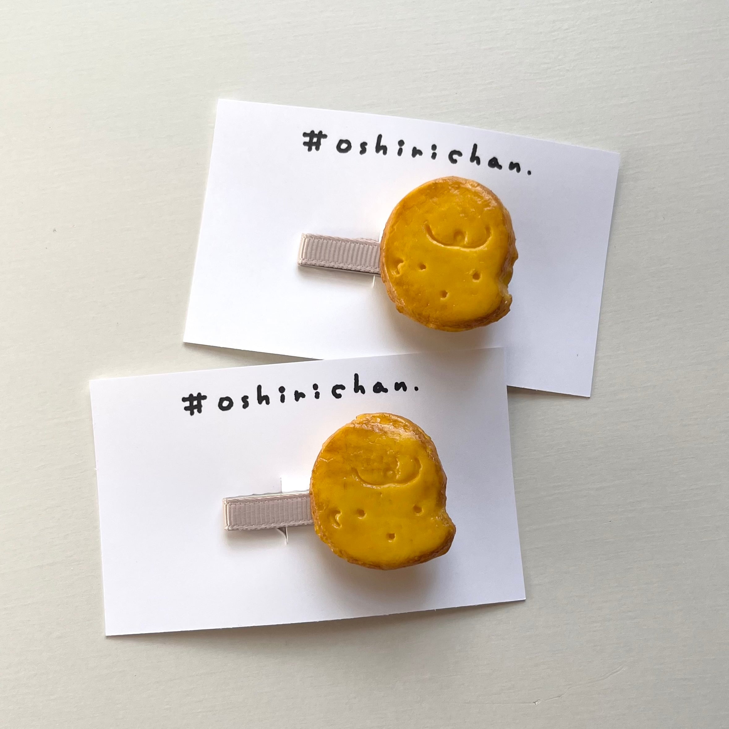 こんがり焼き上がったおしりちゃんフェイスクッキーをヘアクリップ(ヘアピン)にしました✨