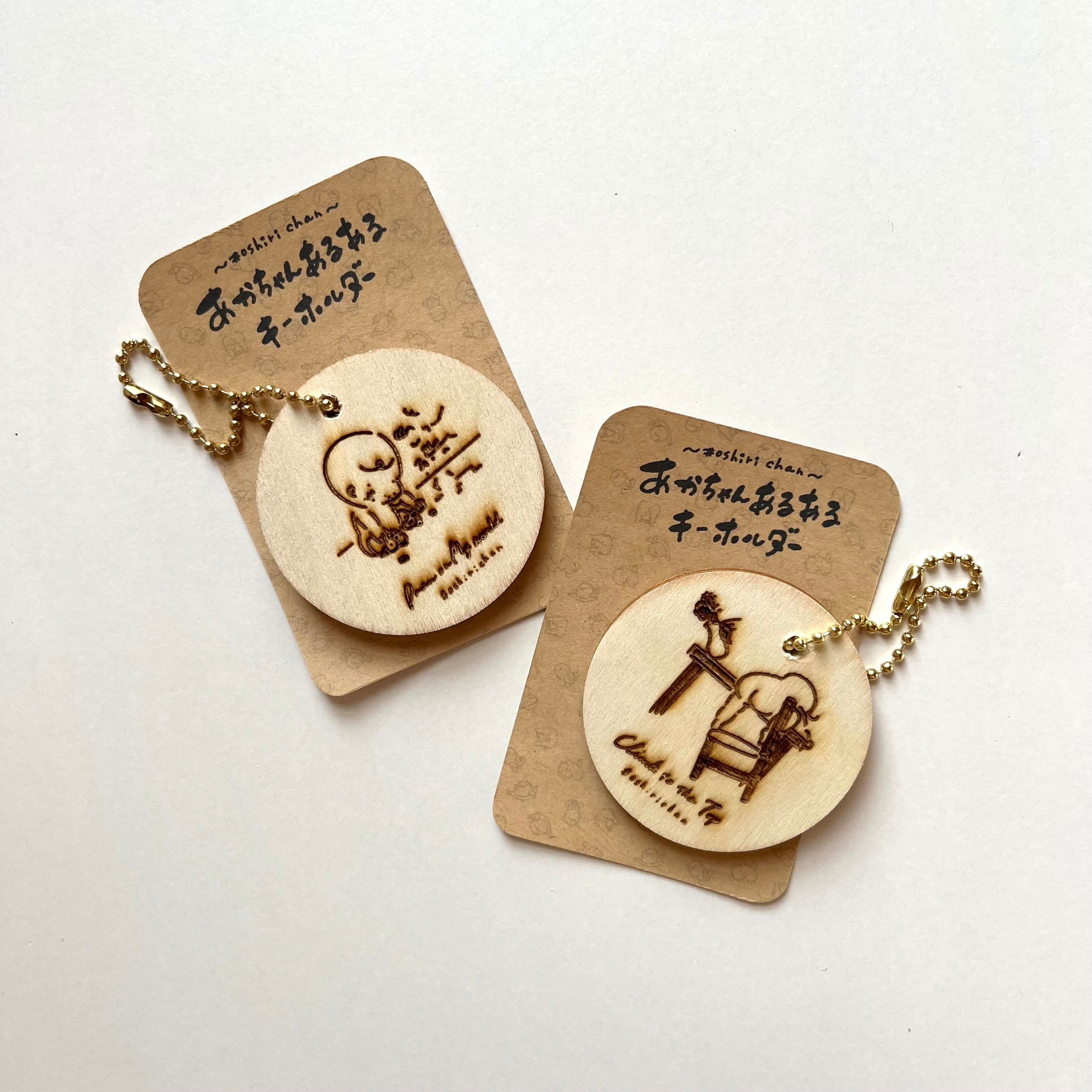 あかちゃんってこんな行動するよねー!なあるあるを木に焼き付けてキーホルダーにしました☺️